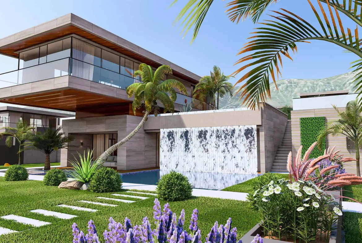 New detached villa project includes 3 bedrooms, living room and 4 bathrooms and pool