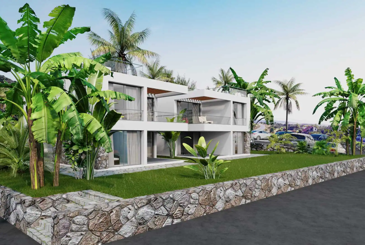 At the foot of the green mountains, where the hiking trail starts right on your doorstep and overlooking the Mediterranean Sea, just 700 metres away, is our new Oasis project.